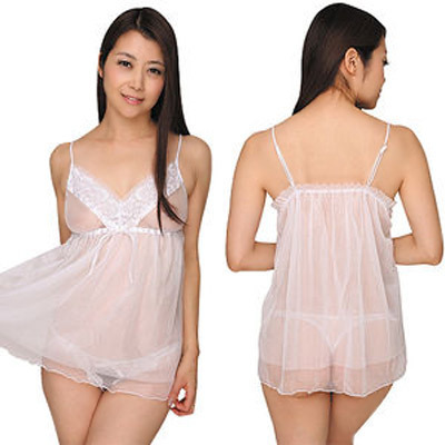 極薄シースルー&レーストップベビードール&Tバック ホワイト ホワイト