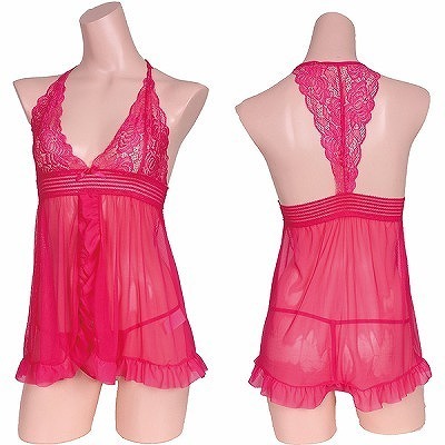 恋心フェミニンベビードール&Tバックセット ピンク ピンク