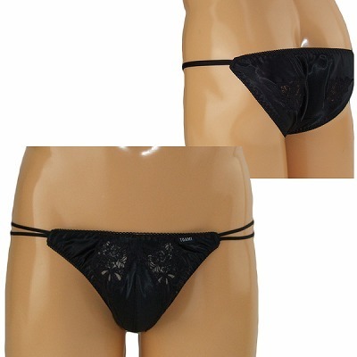 メンズ 光沢ストレッチ生地レース装飾フルバック ブラック ブラック