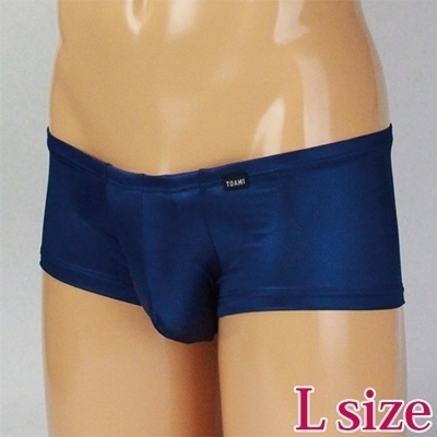 メンズ 伸縮性の有る光沢ストレッチ生地の玉袋付きボクサー Lサイズ