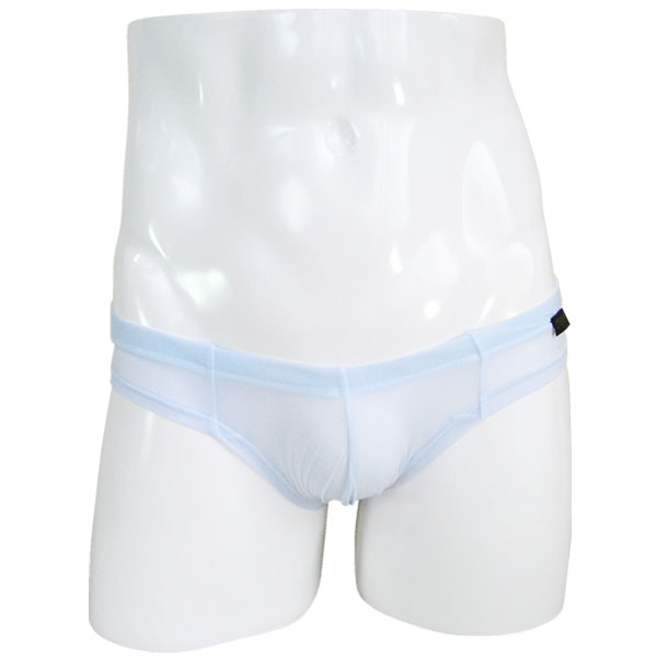 水色の柔らかいストレッチ素材を使用!もっこりしたアソコが楽に収まると評判なんです!股上浅めでどんなボトムでもOKな、メンズ用のローライズハーフバックショーツです。
