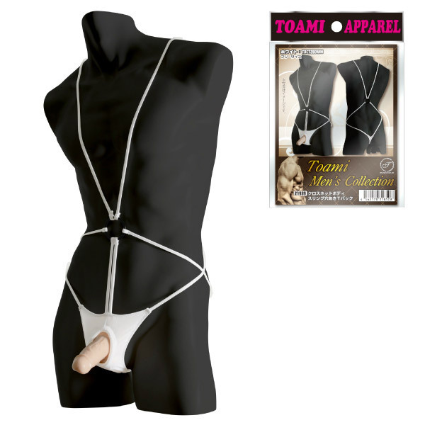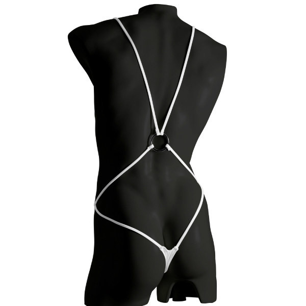 ボディでクロスさせた白い紐が超セクシー!テディのように挑発的なメンズランジェリー。