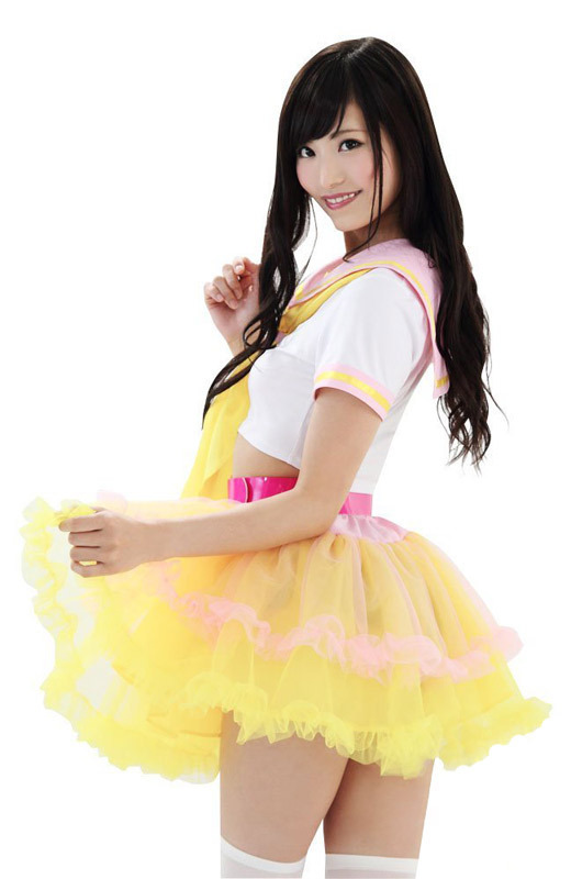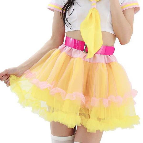 アイドル風コスチュームやセーラー服コスプレのお供に♪黄色×ピンクのキュートなカラフルパニエスカート。