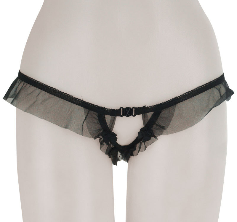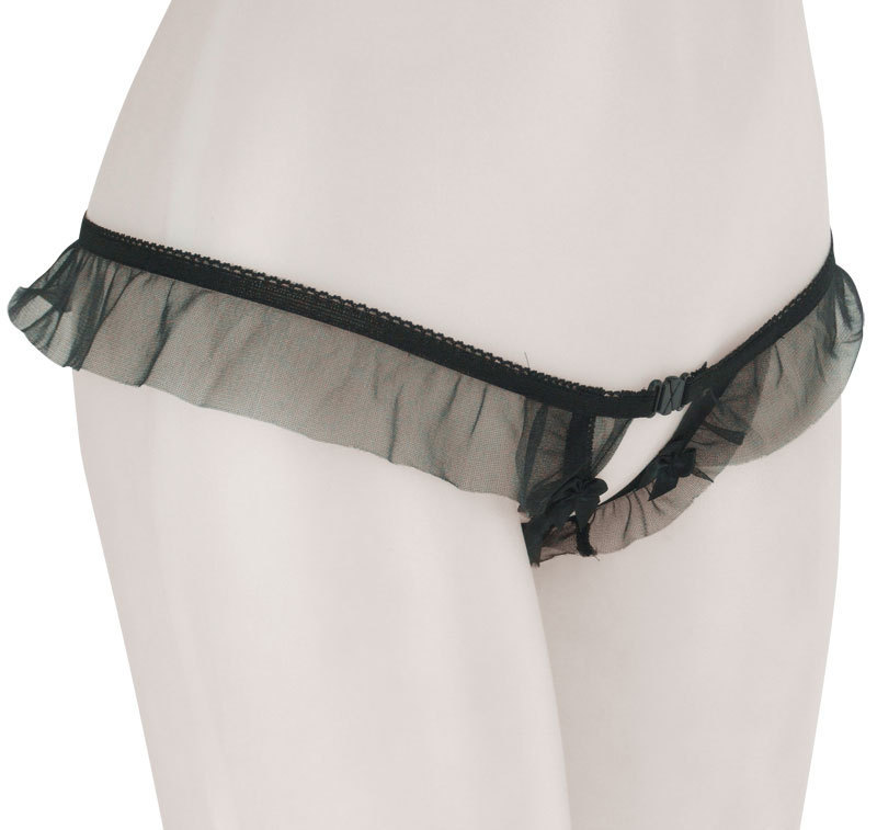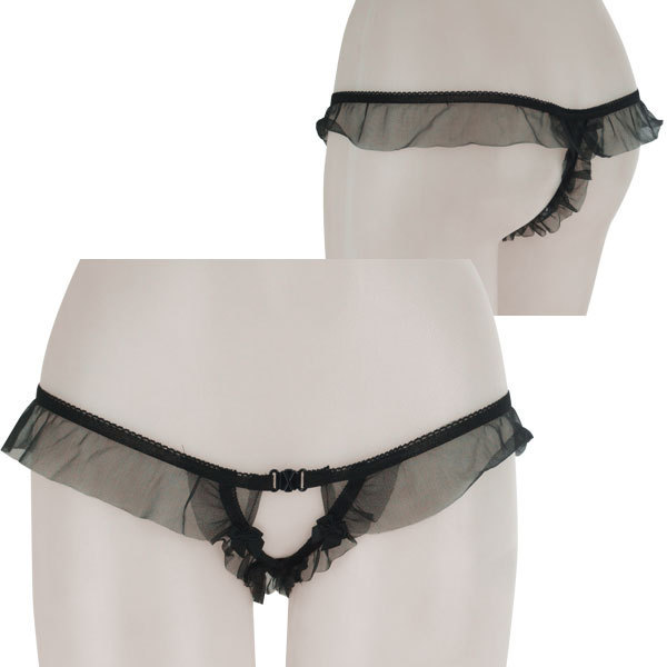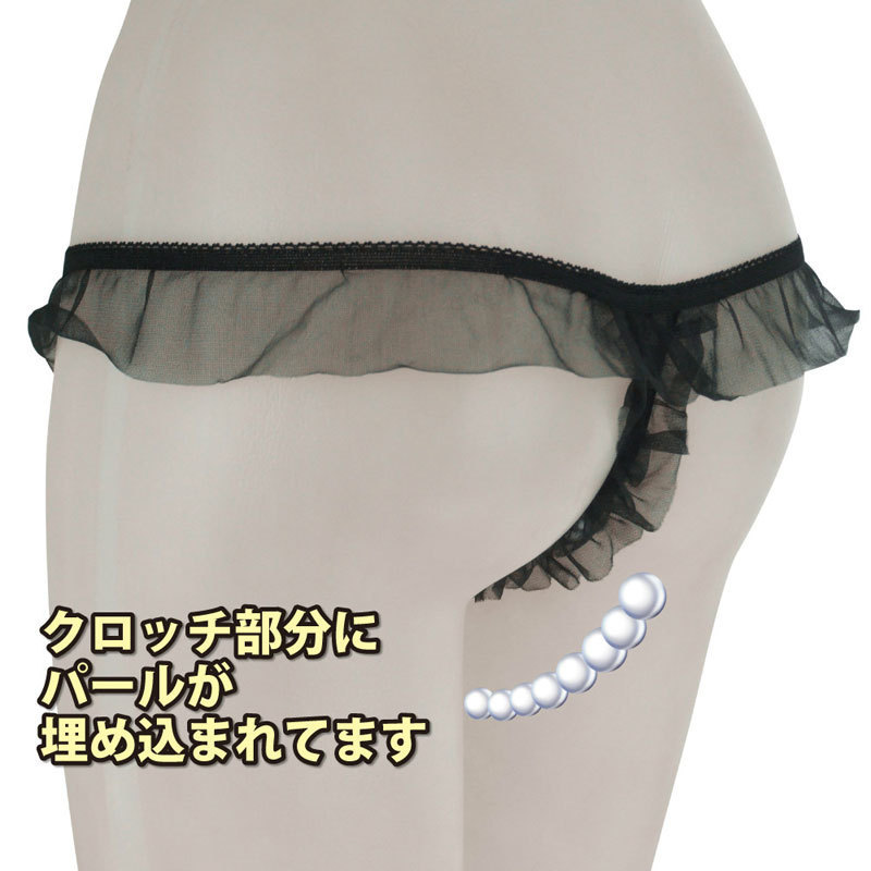 大きめフリルがとってもキュート♪たっぷりシースルーフリルをあしらったパール付きGストリングショーツ。