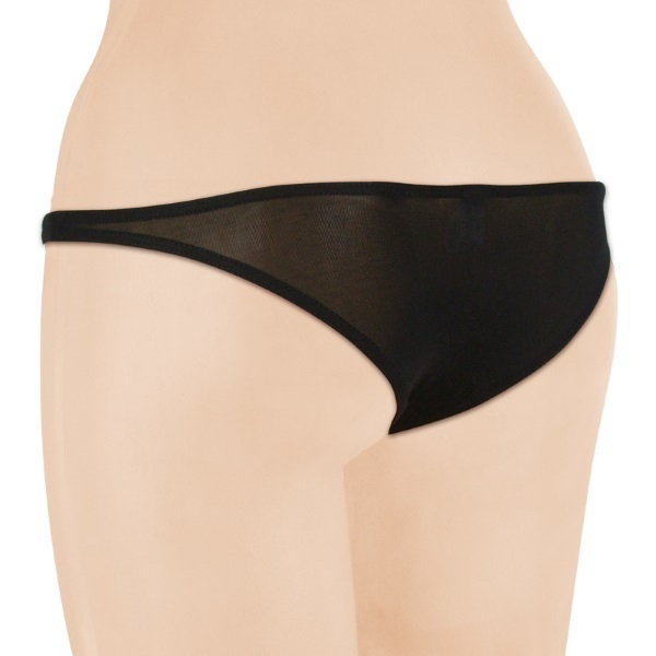 ●大人ブラックの極薄シースルー●サラッと快適な質感&穿き心地●全方向に伸縮するストレッチ力●ややローライズな浅い穿き込み●後姿で色気を放つハーフバック●サイド細めのセクシー仕様。