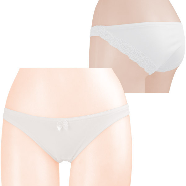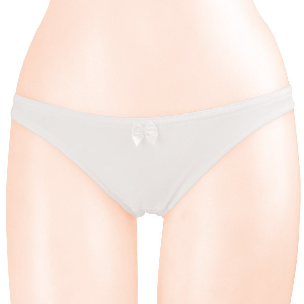 ●シンプルで清楚なホワイトカラー●透け感がセクシーなトリコット生地●脚ぐりに上品なレース飾りをON●フロント中央にミニリボン付き●お尻すっぽりのフルバック●腰と脚回りはインゴム仕立て●日本製・Mサイズ。
