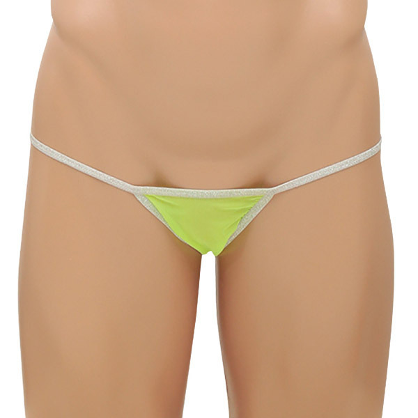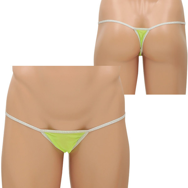 <EROX>メッシュデザインでセクシーに魅せる大人のメンズランジェリーシリーズ!ネオングリーン×白カラーのサイドストリングTバックショーツ「タウルス」。スパンデックス5%、ポリエステル95%。