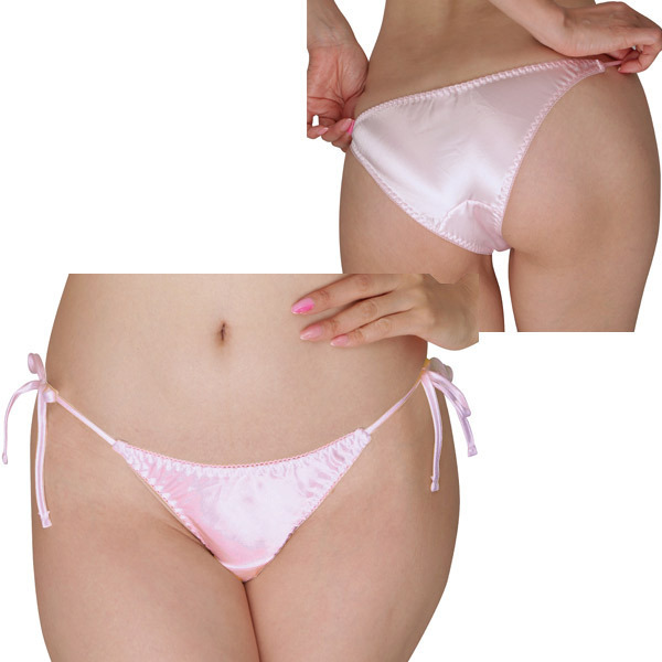 光沢サテン脇紐フルバック ピンク