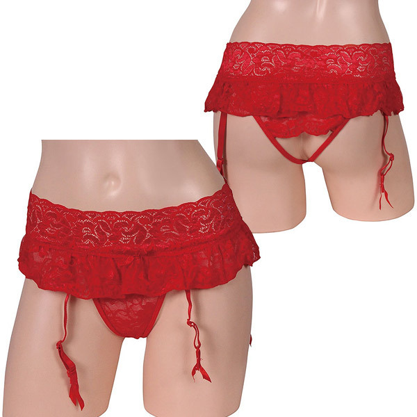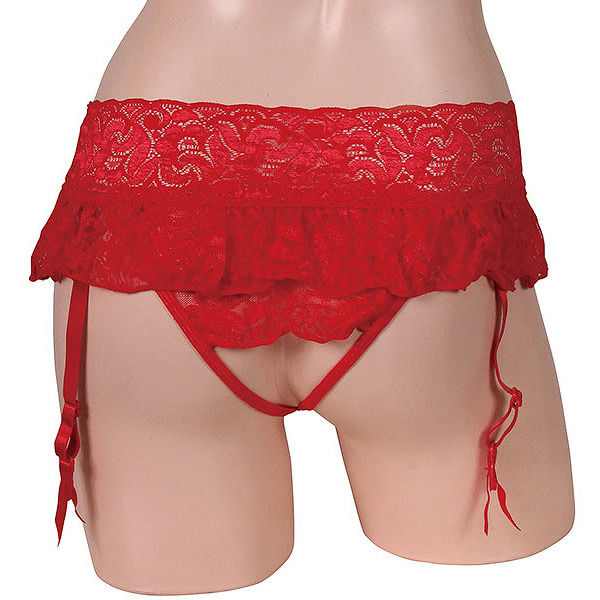 セクシャルな魅力満載オープンショーツ一体型ガーターベルト レッド