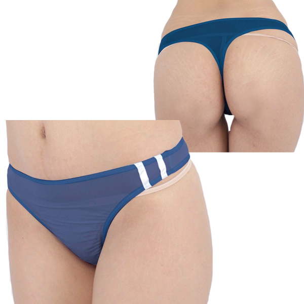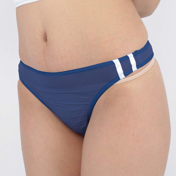 普段着でもブルマを取り入れたい方は是非どうぞ!2本の白ラインが入ったネイビーカラーのブルマ風Tバック(日本製)。