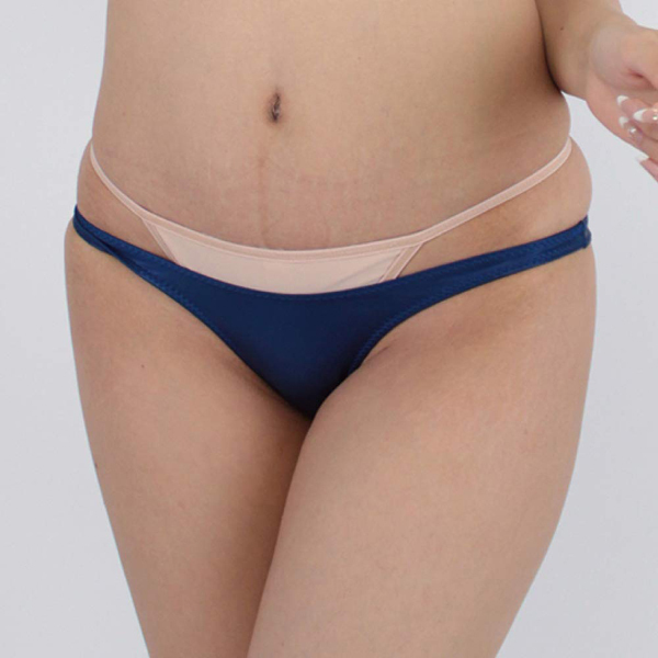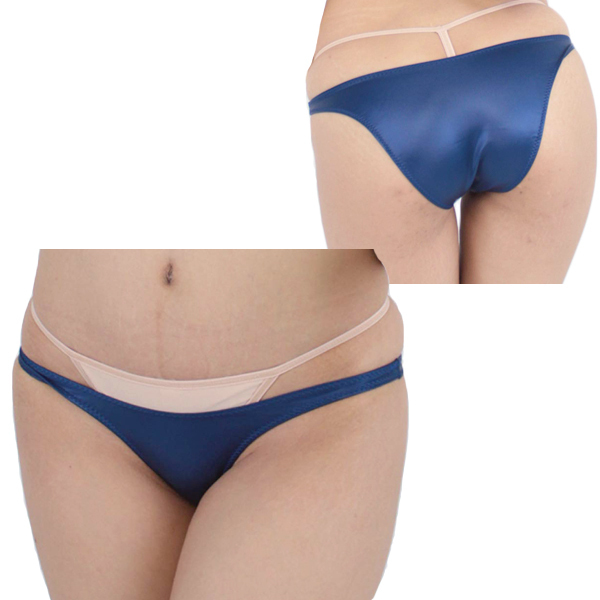 艶やかな光沢が美しいストレッチ生地の日本製ハーフバック(紺)。