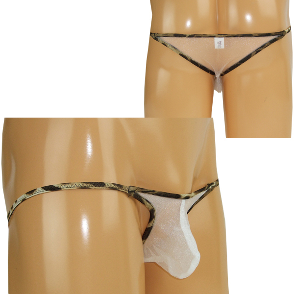 男性の象徴を大胆にアピールしたい小悪魔な男性に!ワイルドなヒョウ柄の日本製ハーフバック(白)。