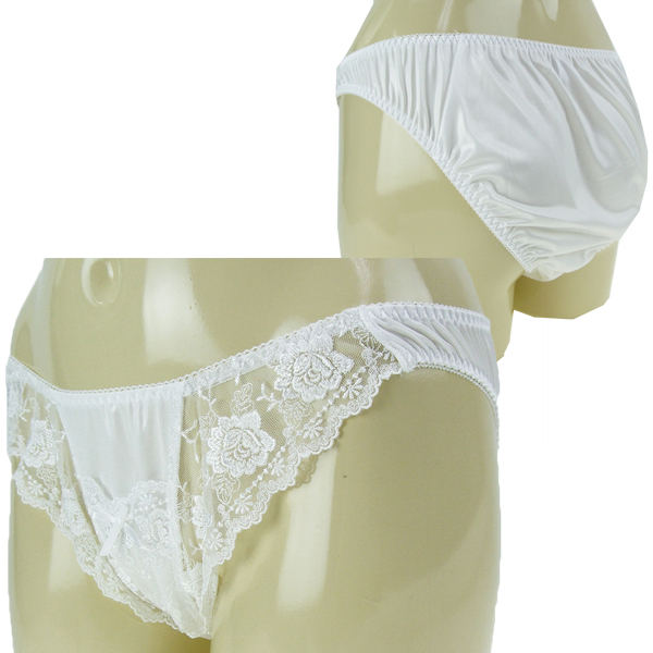 3Lサイズ 光沢ストレッチレースポケット付きフルバック ホワイト
