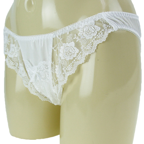 伸縮性の高いストレッチ素材が穿き心地抜群!光沢の美しいフェリカ生地と繊細な花柄レースで仕立てた日本製フルバック。