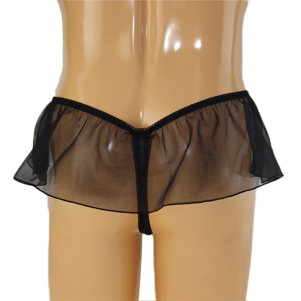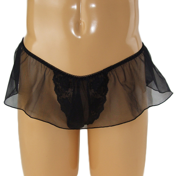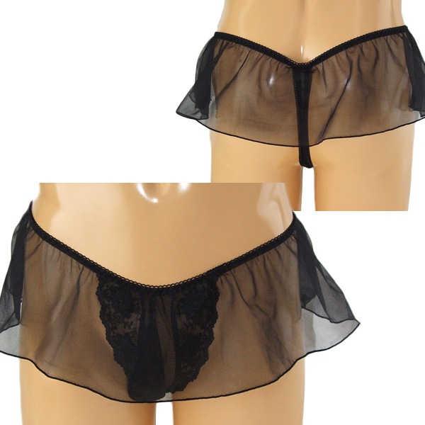揺れるレースがエレガント!可愛いが好きな男性のための日本製レーススカート付Tバック(黒)。