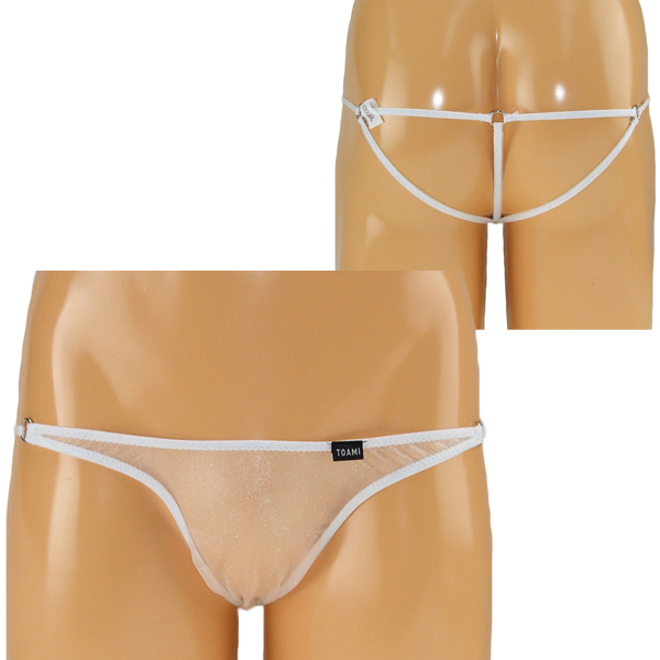 背面は3本の紐のみで仕立てたオープン仕様で、スケスケの生地と紐をメタルリングでジョイント!ヌードよりもセクシーに決まる日本製オープンショーツ。