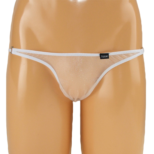 キラキラとした極薄シースルー生地で大胆に魅せるメンズ用オープンショーツ(白)。