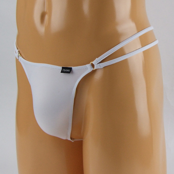 腰周りのダブルストリングデザインがお洒落な日本製のメンズ用Gスト(白)。