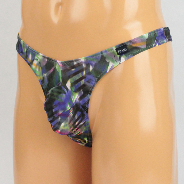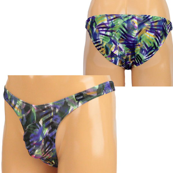 メンズ ストレッチ幾何学プリントもっこりフルバック パープル