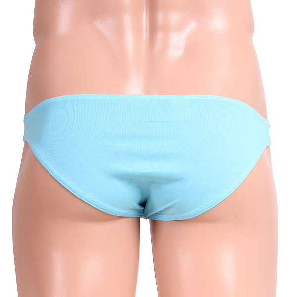 通気性が良く肌触りの良いコットン生地を使用した、夏に最適なサックスブルーのメンズ用Tバック。