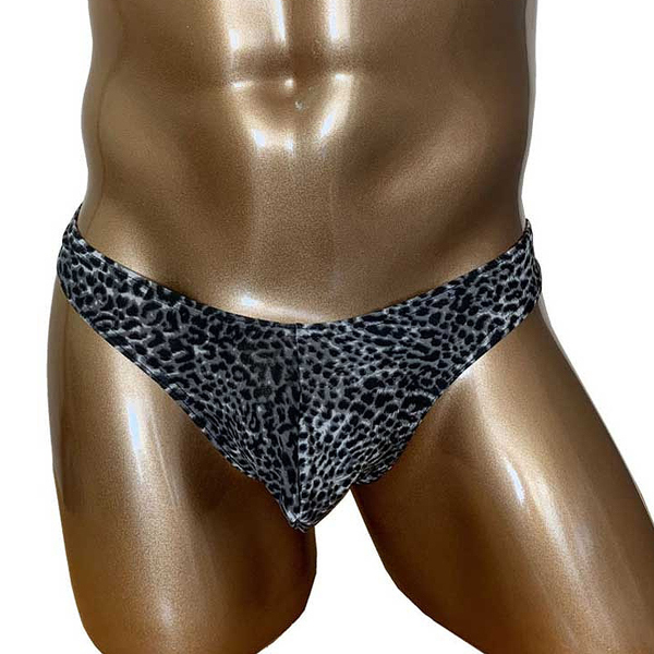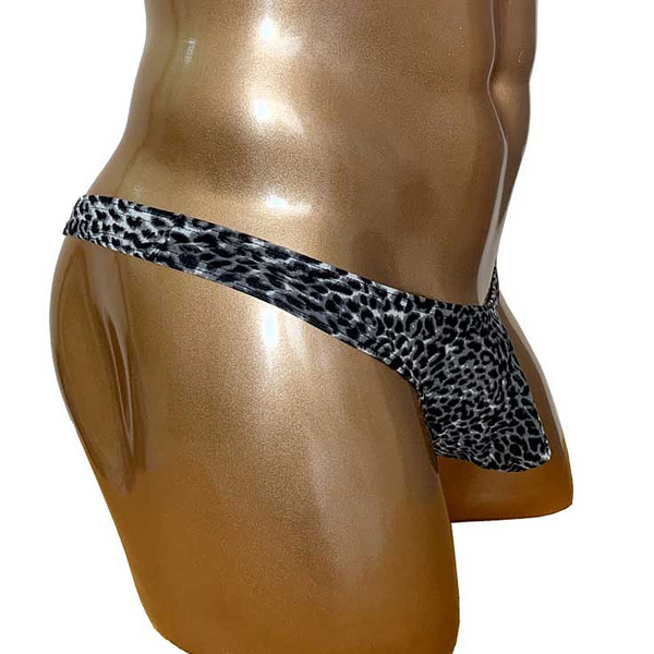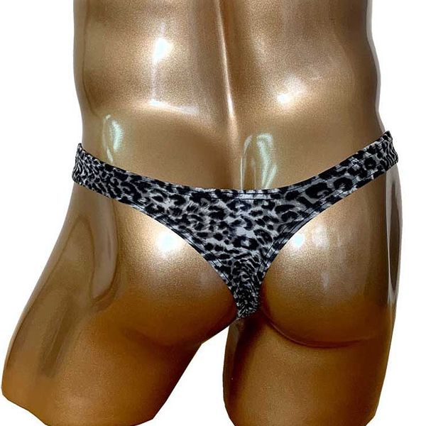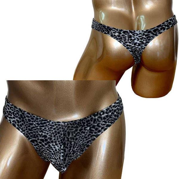 モノトーンでシックにまとめたヒョウ柄模様の男性用Tバック。