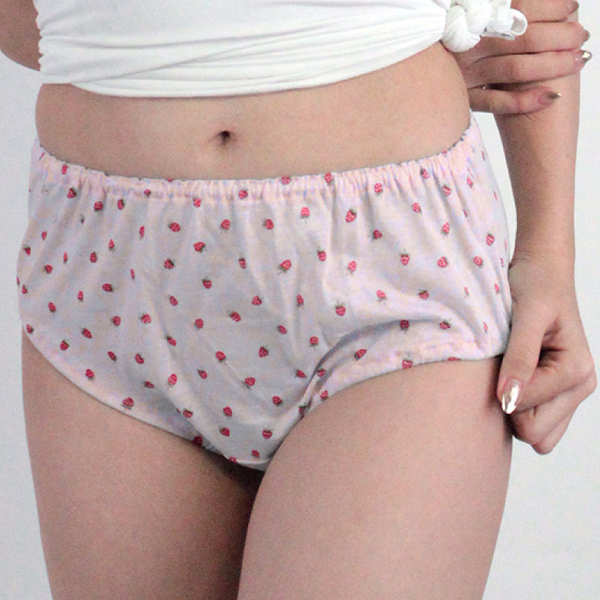 ショーツ・パンティ > 肌なじみの良いイチゴ柄コットン深履きショーツ ピンク