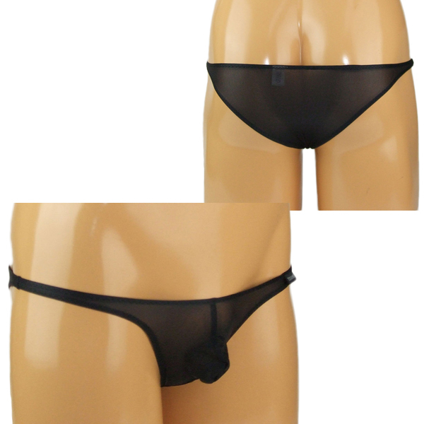 黒の極薄生地で男の色気を際立たせるメンズ用シースルーハーフバック(黒)。