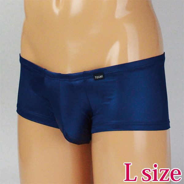 メンズ 伸縮性の有る光沢ストレッチ生地の玉袋付きボクサー Lサイズ