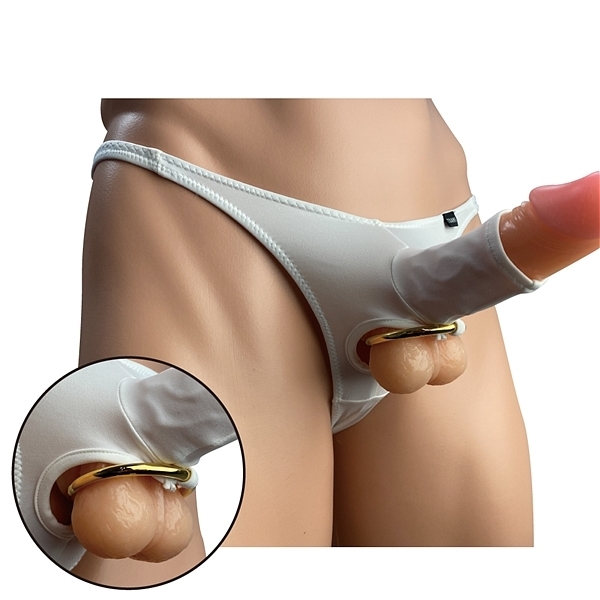 逞しさをアピールする、気合いのリング付き!メンズ向けのホワイト色のゾウさん柄Tバック♪日本製で安心の品質!Mサイズで、着心地もバッチリ♪個性的なデザインで、おしゃれにアピール!日常使いはもちろん、特別な日の演出にもおすすめです♪