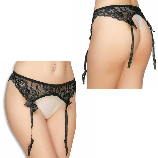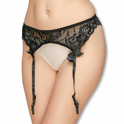 定番人気のフラワーレースガーターベルト (ブラック)