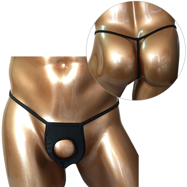暑い日も蒸れずに快適!男の象徴を一段と際立たせるバッドダディの竿出しホールTバック(ブラック)です♪逞しい貴男を強調したいときにぴったりな横も後ろもヒモだけ仕様!男性のポールだけをコンニチワさせて履くので、露出度高めでインパクトも抜群です。
