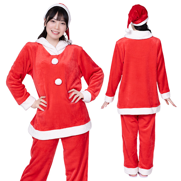 軽いのに密度の詰まったしっとりとしたふわふわ生地で、やさしく身体を包んでくれるサンタパジャマ。