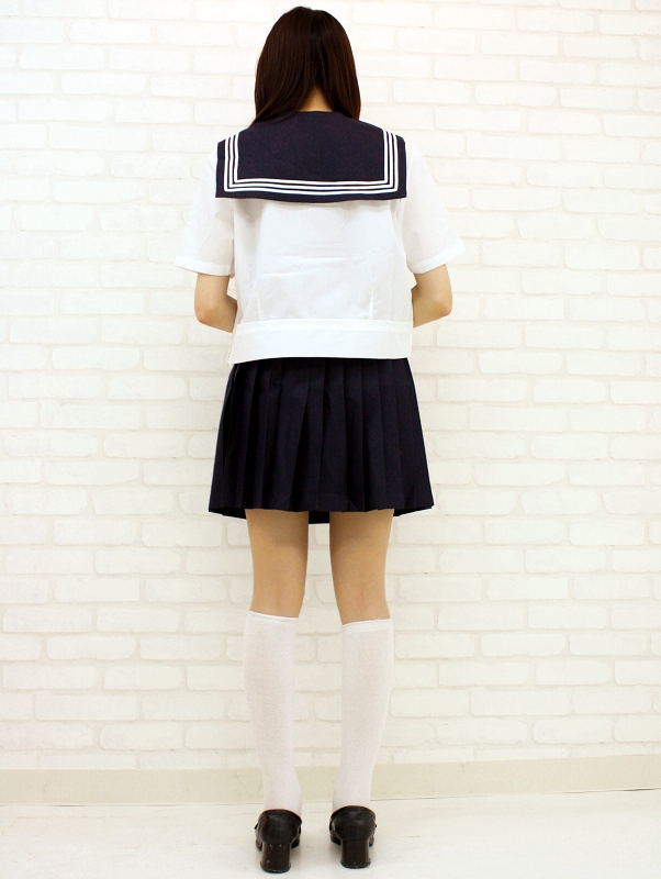 青いリボンが爽やか!キュートな半袖セーラー服コスプレ。