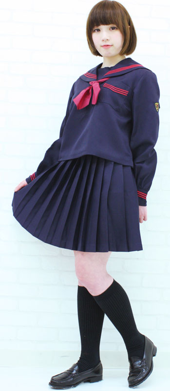 女の子の憧れ!赤の3本ラインがキュートな、冬服仕様のセーラー服。