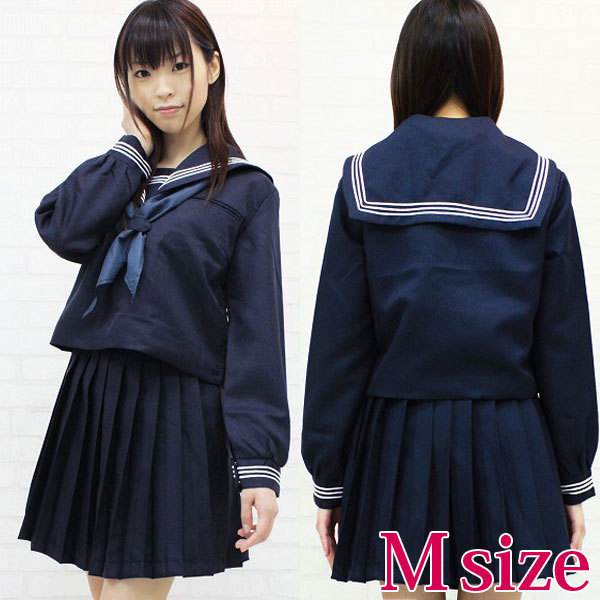 制服コスプレの定番!ネイビーカラーの長袖セーラー服。