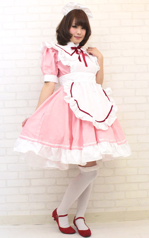 ピンクに馴染む白が乙女チックなワンピースのメイドさん衣装。