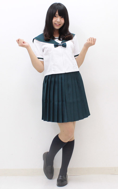 お嬢様学校として有名な学校の夏服セーラー服(M)がついに登場!ちょっぴり珍しい深緑カラーでキュートに仕上げた制服コスプレです。