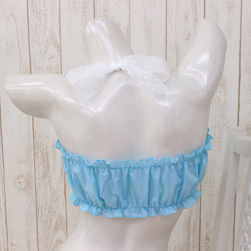 見せブラOK!たっぷりギャザーが超可愛い、水色のチューブブラジャー単品。