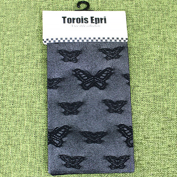 蝶柄ハイソックス 黒 フリーサイズ
