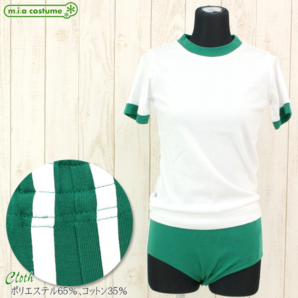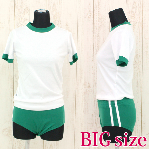 人気体の操着コスプレに新色グリーンの大きめサイズ、トップス&ブルマの上下セットが登場しました♪白とグリーンのカラーリングはどこか懐かしさを感じさせる可愛いデザイン!スベスベ素材は伸びの良い生地を使用で着心地良く、運動の際もしっかりのびのびと動けます♪緑ブルマのサイドには白い2本のライン入りでちょっぴり本格派!洗濯時には手洗いも可能です。