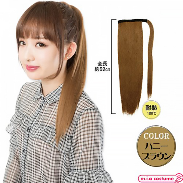 マジックポニーで簡単イメチェン♪カラーはハニーブラウンで、二つ使えばツインテールにもアレンジ可能!毛質はサラサラで地毛に馴染みやすく、明るめの地毛に合わせやすいです。