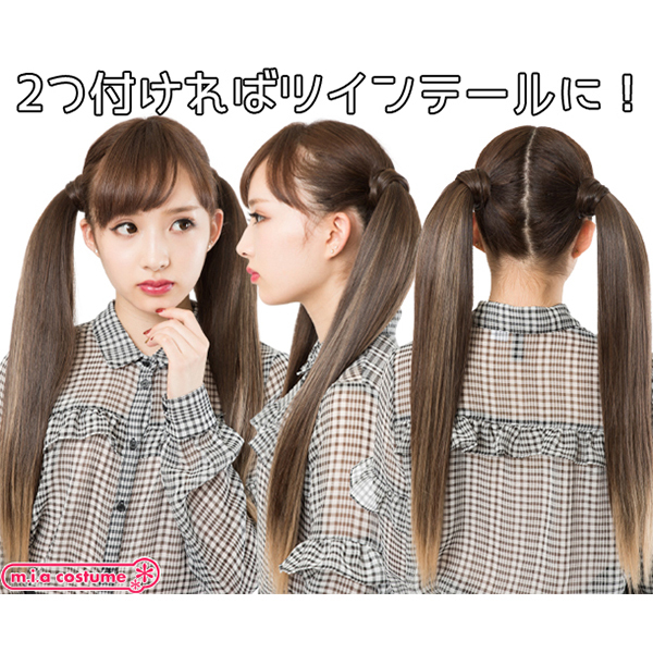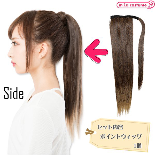 気分を変えたいときにおすすめの着脱式の耐熱ポイントウィッグです!手軽に使えるマジックポニーで簡単イメチェン♪二つ使えばツインテールにもアレンジ可能!地毛に馴染みやすいサラサラの毛質です。