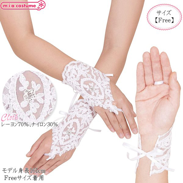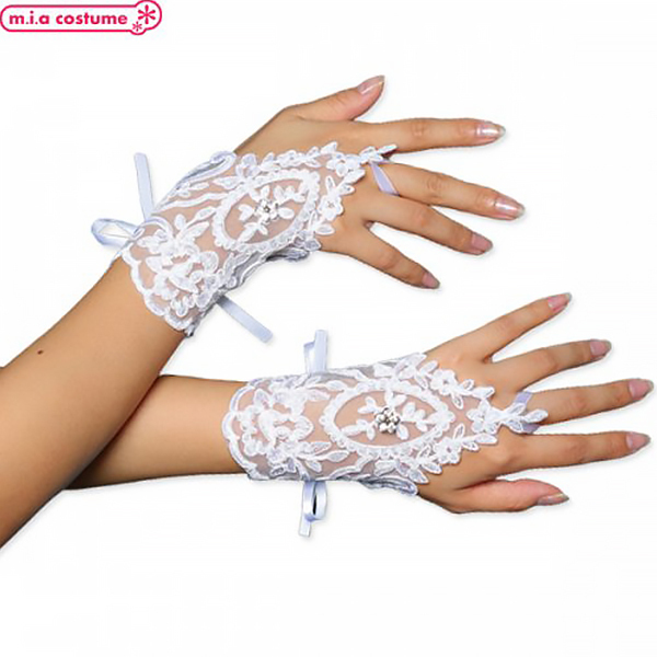 あしらわれた模様が可憐で純潔なイメージのレースグローブで、長く美しい指と腕を主張するときにも役立ちます♪中指を通して手の甲に装着するタイプのレースグローブとなっています。