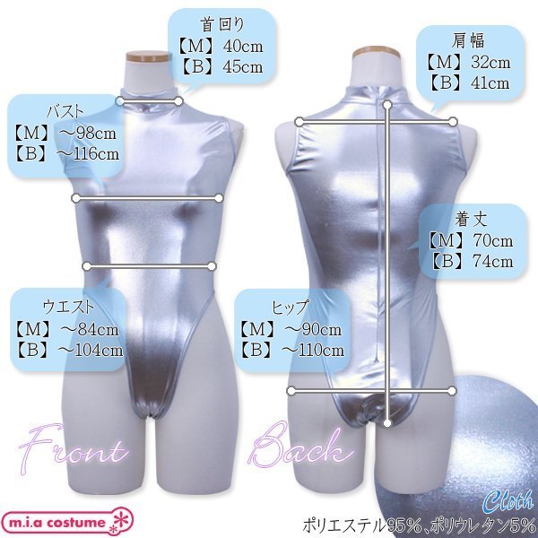 Mサイズ:B〜98cm・W〜84cm・H〜90cm・肩幅32cm・首周り40cm・着丈70cm セット内容:レオタード単品(後ろファスナー) 素材:ポリエステル95%、ポリウレタン5%
