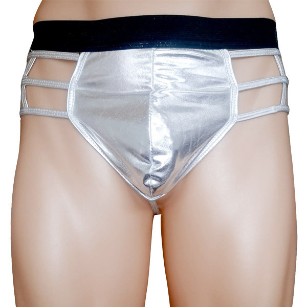 対極にある「隠す」と「見せる」をバランスよく釣り合わせたセクシー下着!目が眩みそうなシルバーのきらめきと肌見せ感で、男の色気をたっぷり引き出します。