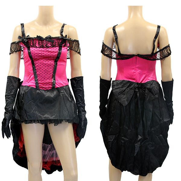 Mサイズ(平置き):B37〜43cm・W33〜40cm・Hフリー 丈:前身頃68cm/後ろ身頃115cm セット内容:ワンピース(背面ファスナー)・ロング手袋×2(全長42cm)・ミニハット(クリップ留め)