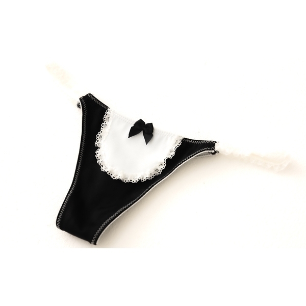 小さなリボンとエプロンやレースをあつらえた、キュートでセクシーなメイド風デザインのショーツです。