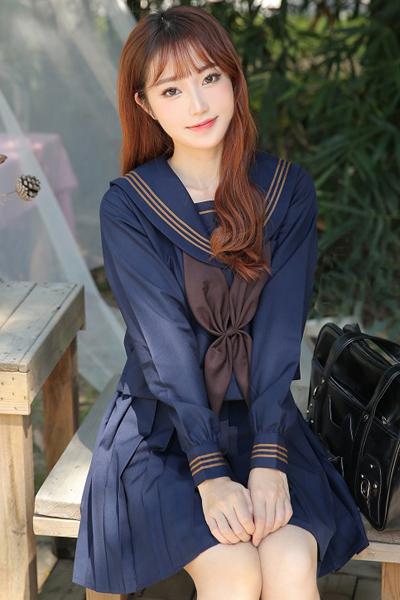 <malymoon>紺×茶クラシック長袖セーラー服